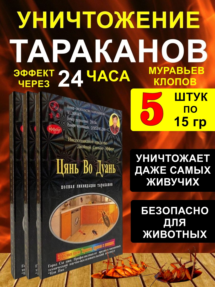 Средство порошок от тараканов безопасен для людей, домашних животных. Средство цань во дуань так же эффективно уничтожает других насекомых таких как клопы и муравьи.
