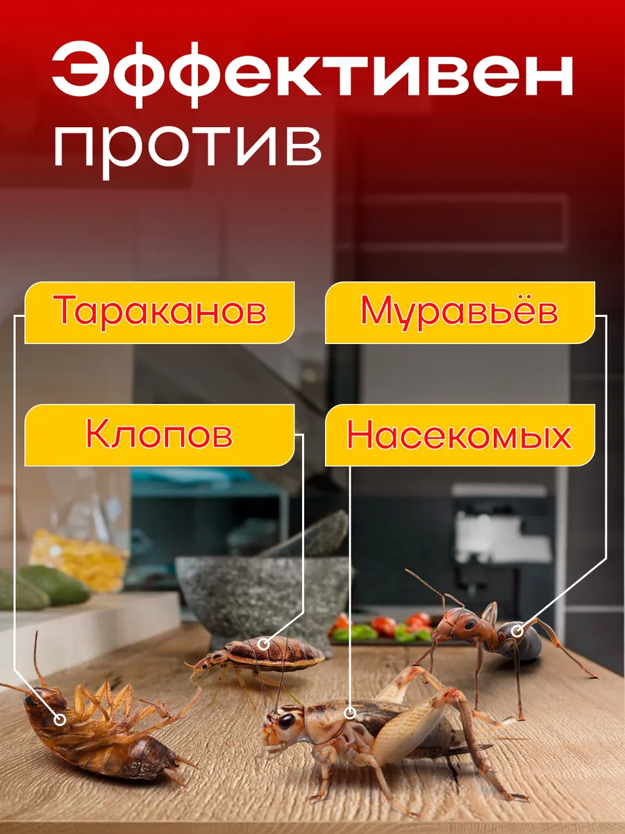 Порошок от тараканов содержит любимую пищу насекомых и специальную отраву для тараканов. Вызывает цепное заражение и эпидемию всей колонии вредителей уже через 2-3 дня.
